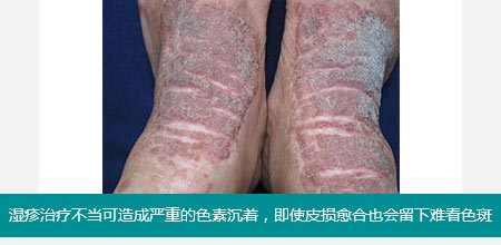 损害外观:湿疹严重时,皮肤可出现大片渗液及糜烂;而当皮肤渗液减少或完全结痂时,可出现大量鳞屑痂、色素沉着及皮肤裂口,严重损害患者外观;