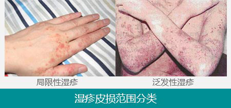 2.根据皮损累及的范围,分为局限性湿疹和泛发性湿疹两大类。