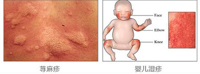 婴儿湿疹:此病可见小水疱,黄白色鳞屑及痂皮,可有渗出、糜烂及继发感染。而荨麻疹不会出现此类症状;